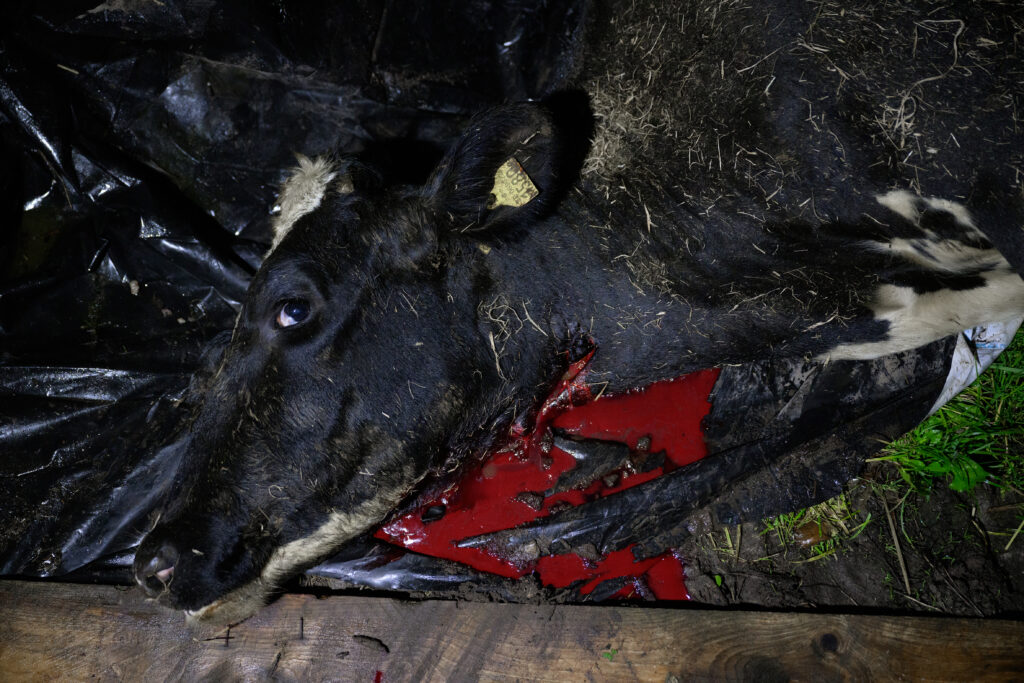 In November 2025, Djurrättsalliansen installed hidden cameras recording the activities on the dairy farm for one week. Footage from one of the documented days shows what happened to a cow who could not stand up. She was beaten, kicked, and jumped on multiple times. After several hours she was moved by staff. Later, members of Djurrättsalliansen found her dead. She lay in a pool of blood among plastic debris outside the barn, her throat having been slit.