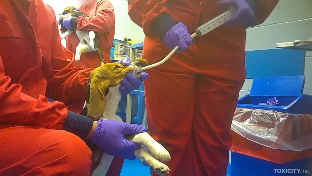 Nytagna filmer och bilder visar hundar som spänns fast och tvingas andas in kemikalier, minigrisar som får testsubstanser i uppskurna sår och apor som får slangar ner i halsen där kemikalier förs rakt ner i magsäcken.